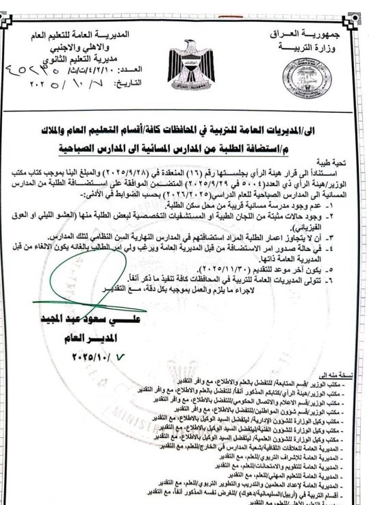وذكرت الوزارة في بيان ورد لـ”كور”، أن “المديرية العامة للتعليم العام والأهلي والأجنبي في وزارة التربية فتحت أبواب استضافة الطلبة من المدارس المسائية إلى المدارس الصباحية للعام الدراسي (2025 – 2026)، وذلك وفقاً للضوابط الموضحة أدناه: