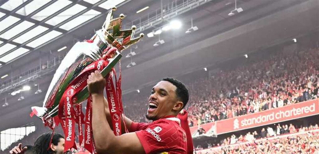 ولوح ألكسندر أرنولد للجماهير وقام بتقبيل شعار الفريق على قميصه، قبل أن يتم منحه وقتا طويلا لحمل كأس الدوري الإنجليزي في احتفالات زملائه مع الجماهير التي هتفت له أثناء حمله للكأس.